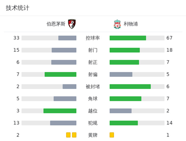 全场比赛结束,利物浦2-1伯恩茅斯晋级八强!