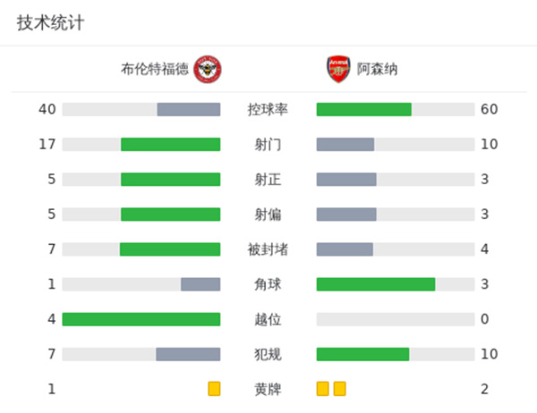 关键事件: 第7分钟,布伦特福德后场回传失误,恩凯提亚断球后回敲,尼尔森冷静推射得手,布伦特福德0-1阿森纳!
