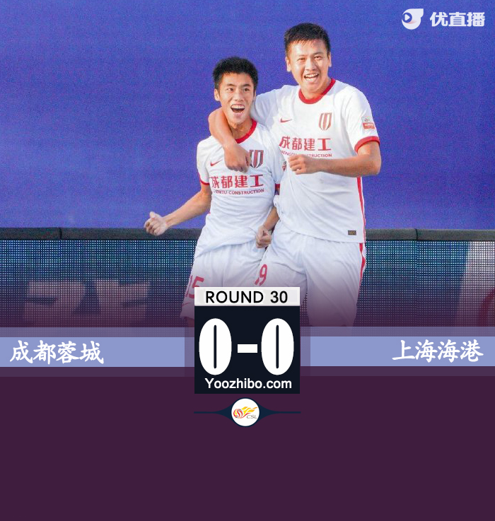 JRS直播网12月10日讯 北京时间12月10日15:00,中超联赛第30轮成都蓉城迎战上海海港的比赛,上半场恩迪亚耶错失单刀,双方均无建树,下半场蒋光太完成门线解围,甘超世界波被吹无效,最终,成都蓉城0-0上海海港。