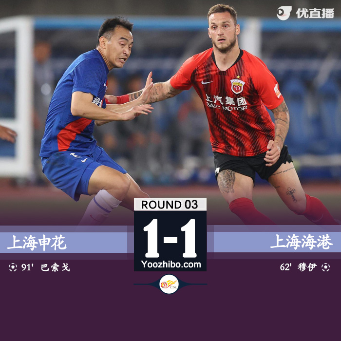 JRS直播网5月5日讯 北京时间5月5日晚8点,2021赛季中超联赛苏州赛区第三轮展开一场焦点大战,上海申花与上海海港在苏州体育中心迎来德比大战。上半场,双方火药味十足,场上拼抢也十分激烈,但威胁进攻都不多。下半场,穆伊禁区外围精彩世界波打破僵局,随后,申花莫雷诺和巴索戈都错失单刀良机。第82分钟,买提江凶狠铲抢于汉超被直红罚下。第90分钟,申花获得点球,巴索戈一蹴而就为申花扳平比分。最终,十人作战的上海海港1-1与上海申花战平,两队本赛季继续保持不败。