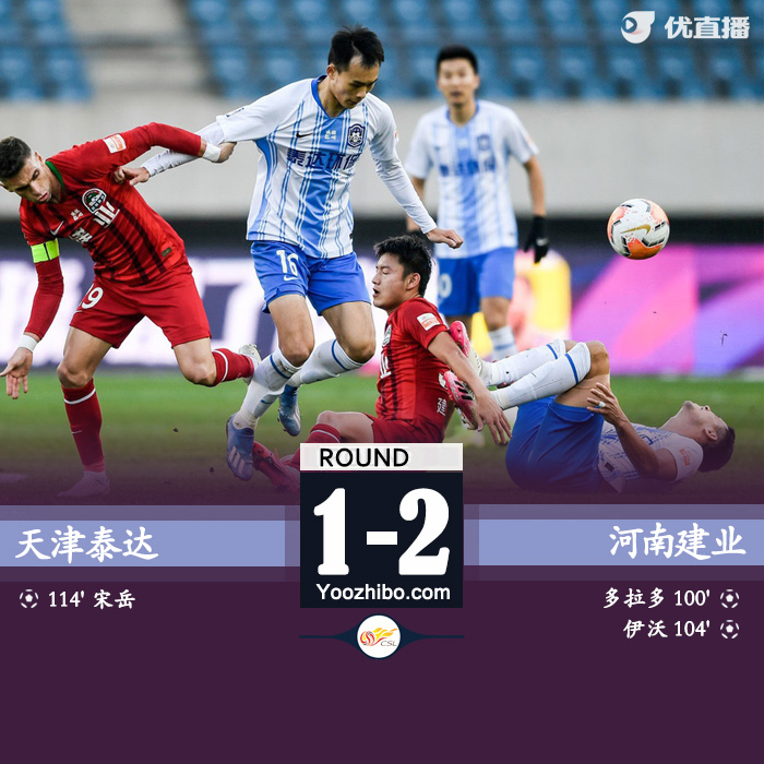 JRS直播网讯:北京时间11月10日15点30分,中超9-10名排位赛次回合打响,天津泰达对阵河南建业。上半时两队威胁进攻不多,周定洋无人防守下的打门擦柱而出。下半场刘若钒头球破门被吹越位无效,最终双方0-0进入加时赛。加时赛上半场多拉多远射破门打破僵局,随后伊沃主罚点球命中;宋岳头球破门扳回一球,最终建业总比分2-1战胜泰达,获得第9名,泰达获得第10名。
