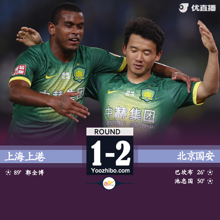 第26分钟,国安打破场上僵局,张稀哲外围左路挑传打到禁区,王刚右路加速插上到小禁区前停球后,巴坎布跟上近距离抽射得手,国安1-0上港。