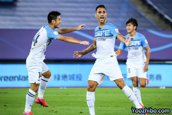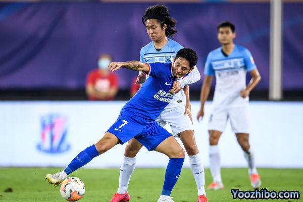 中场休息之后,双方易边再战,第50分钟,朱宝杰禁区外围横传弧顶外,姆比亚跟进右脚推射打偏。第52分钟,曹赟定左路45度吊到禁区后点,托西奇后退中头球解围出现冒顶,身后的沙拉维直接抽射击中边网。第54分钟,萨巴左路盘带后送直塞,扎哈维禁区左侧插上半单刀小角度左脚抽射,曾诚近角将球挡出。第61分钟,姆比亚回传后场中路出现失误,扎哈维断球直接杀入禁区,左脚打门被追防的朱辰杰铲出底线。第64分钟,莫雷诺主罚任意球直接攻门,皮球打在人墙身上弹出,姆比亚跟进打门高出。