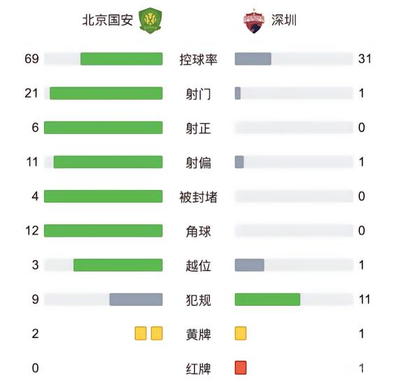 最终全场比赛结束,北京国安5-0深圳队!