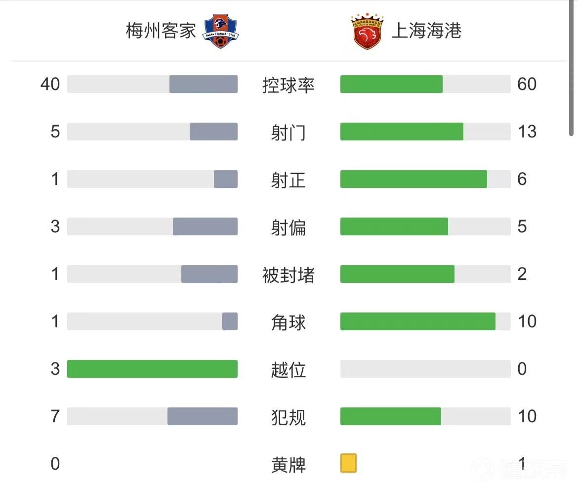 查看:梅州客家队vs上海海港队 全场录像技术统计: