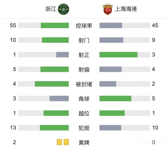 最终全场比赛结束,浙江队主场1-2上海海港。