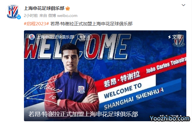 JRS直播网04月05日讯 ,上海申花足球俱乐部官方宣布若昂·特谢拉正式加盟球队。