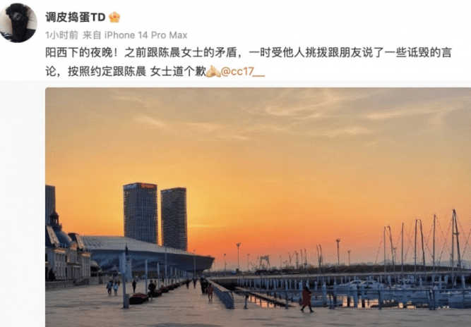如今后续来了,一直力挺吴兴涵,甚至还和吴兴涵的爱人聊天,嘲讽陈晨的戴琳正式道歉,他在社交媒体上表示之前跟陈晨女士的矛盾,一时受他人挑拨跟朋友说了一些诋毁的言论,所以给陈晨进行道歉。