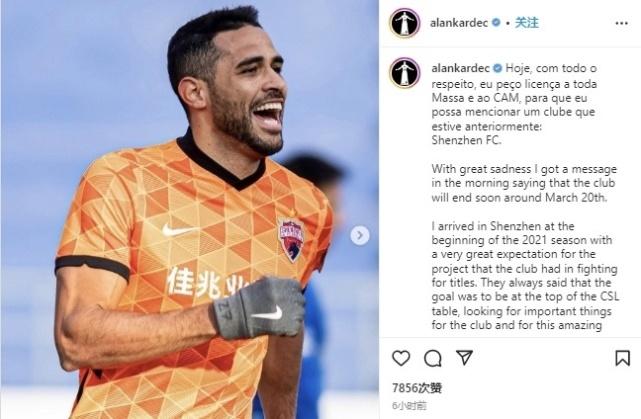 卡尔德克晒出自己身穿深圳队时的球衣写道:“今早我收到一则悲伤的消息,俱乐部将在3月20日左右解散。我希望我的队友们继续他们的职业生涯,未来还有很多挑战。我希望你能够活下来,继续这个美丽的故事。”
