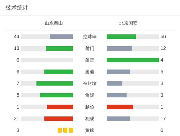 最终,山东泰山0-0北京国安。