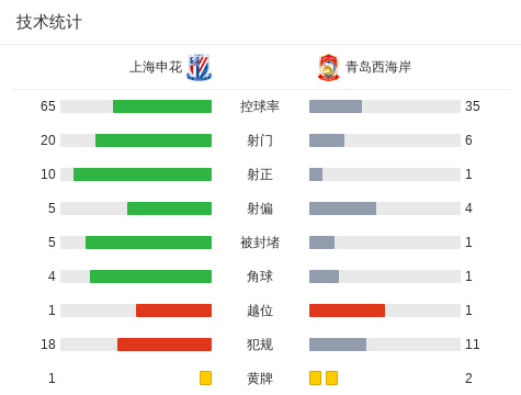 最终申花2-0击败青岛西海岸,新赛季取得两连胜。