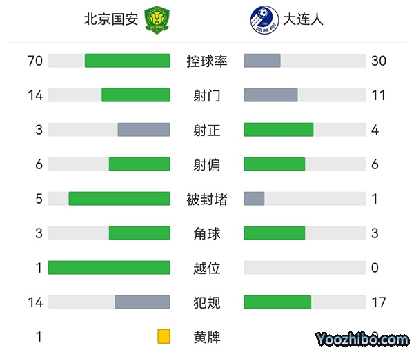 全场比赛结束,最终大连人3-1击败国安。