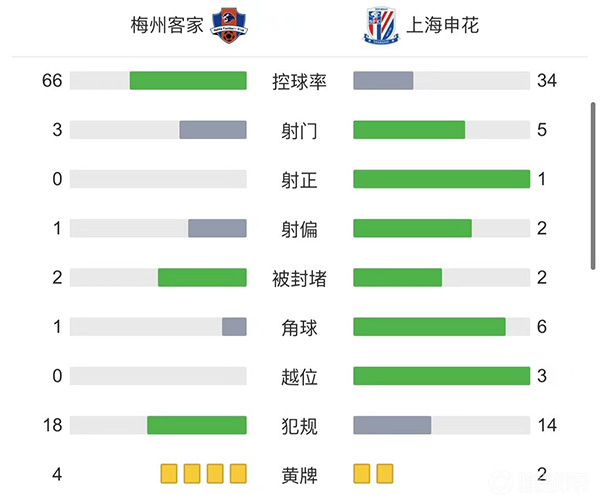 全场比赛结束,最终上海申花1-0梅州客家,结束了联赛四连败。