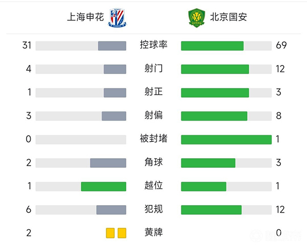 全场比赛结束,最终北京国安2-1逆转上海申花。