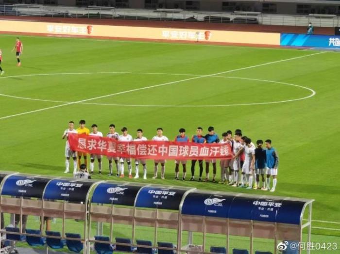 河北很多球员本赛季遭遇欠薪,但依然坚持比赛,第23轮他们曾拉出横幅“恳请华夏幸福偿还中国球员血汗钱”。
