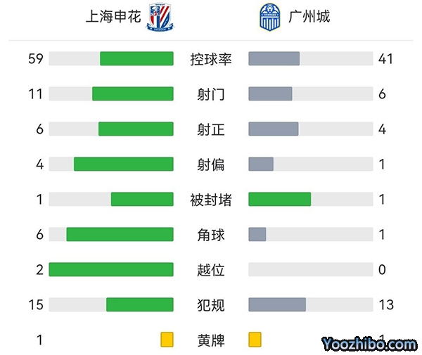 全场结束,广州城1-0击败上海申花。