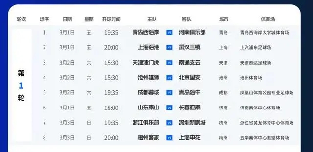 JRS直播网02月25日讯 。中超联赛官方宣布,中超联赛第1轮第6场山东泰山对阵长春亚泰比赛日期提前至3月1日,开球时间为18:00,比赛场地不变。