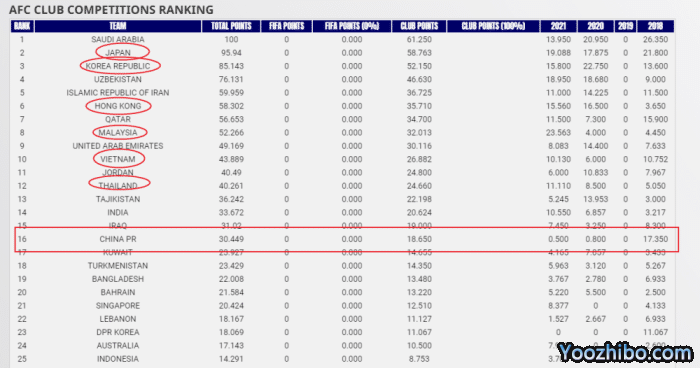 JRS直播网10月20日一件意外又不意外的消息,在整个亚洲足坛发酵。根据亚足联官方消息称,中超排名一落千丈,上赛季的技术分只获得0.50分排名第16位。值得一提的就是,港超、马来西亚、越南、泰国的排名都在中超之前。也就是说,广州队衰败之后,不仅没有中超俱乐部获得冠军,甚至表现过分糟糕导致中超整体不行。