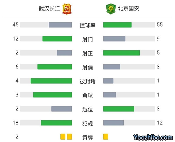 第62分钟,国安扩大比分!张玉宁右路横传左路姜祥佑盘带几步后远射球进。国安2-0武汉长江。