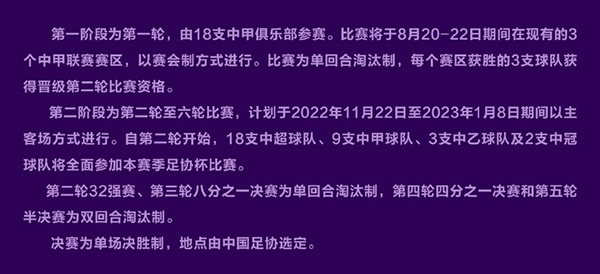 8月15日,中国足协正式公布2022赛季中国足协杯赛制规则。