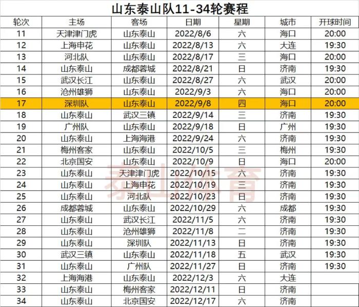 JRS直播网07月31日讯 ,中超联赛第11轮到第34轮赛程发布,泰山队在8月和9月面临极大考验,10场比赛有3个主场,7个客场,其中第11轮到第17轮是6个客场,只有1个主场,海口的高温天气,对泰山队也是一个挑战。从整体赛程看,泰山队在8月和9月的发挥非常重要,全队也要做好困难准备。