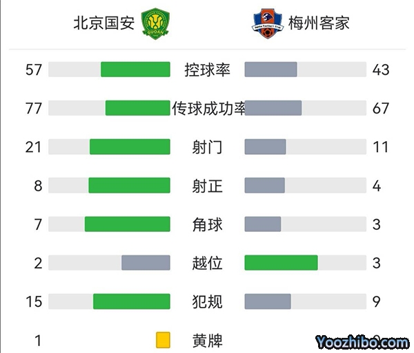 全场比赛结束,北京国安0-0梅州客家!