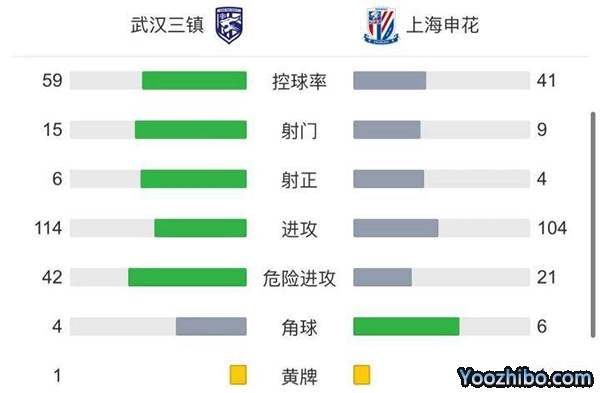 全场比赛结束,武汉三镇4-2战胜上海申花,豪取五连胜的同时送给申花联赛首败。