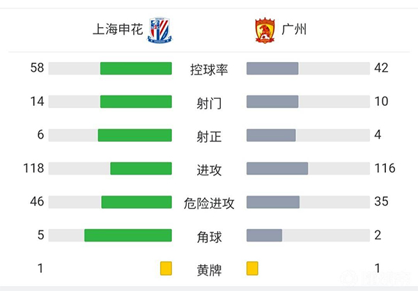 第19分钟,上海申花角球机会,钱杰给将球送向禁区,毕津浩点球点靠后一点的位置停球没有停好,汪海健得球直接一记贴地斩破门,上海申花1-0广州。