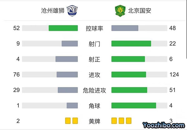 全场比赛结束,沧州1-1北京国安。