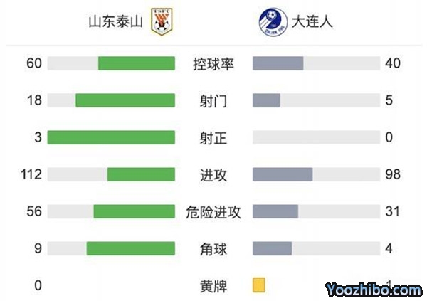 全场比赛结束,山东泰山3-0完胜大连人。