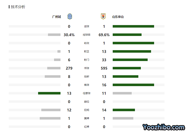 全场比赛结束,最终山东泰山1-0广州城。