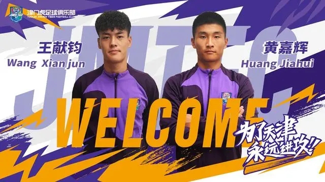 JRS直播网02月02日讯 ,天津津门虎足球俱乐部官方宣布,两位00后生力军王献钧和黄嘉辉正式加盟球队。
