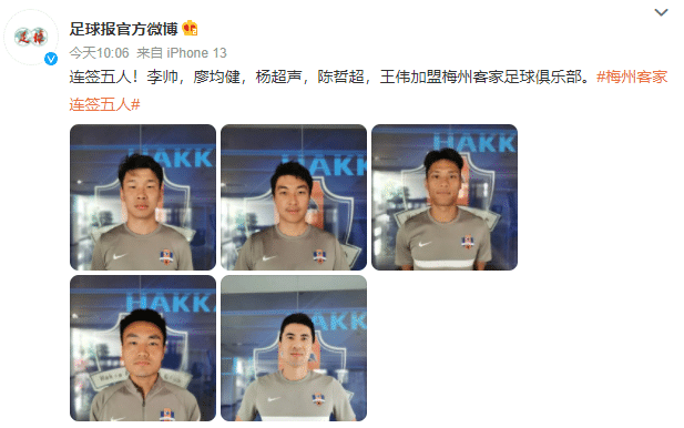 JRS直播网03月22日讯 今天,升班马梅州客家一口气宣布了5名新援,签下李帅、廖均健、杨超声、陈哲超和王伟。