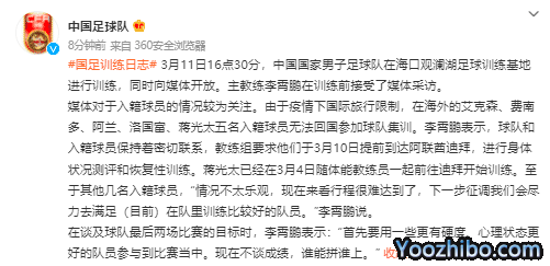JRS直播网3月12日讯 北京时间今天,国足在海口观澜湖足球训练基地进行训练,同时向媒体开放。主教练李霄鹏在训练前接受了媒体采访。