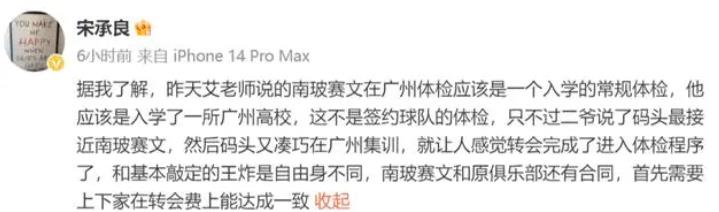 媒体人宋承良也是强调,只不过二爷说了码头最接近南波赛文,然后码头又凑巧在广州集训,就让人感觉转会完成了进入了体检程序,和基本敲定的王炸是自由身不同,南波赛文和原来的俱乐部还有合同,首先需要上下家在转会费上达成一致。