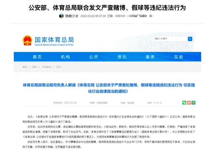 JRS直播网03月02日讯 除了被总局出手打脸,足协还收获了另一个消息,3月2日,总局宣布,将联合公安成立调查组严查假球、DU球等违法违纪违规的情况,促进行业自律自治。相比足协此前的调查,总局联合公安的介入,无疑是动真格,或许这一次足协有麻烦了。