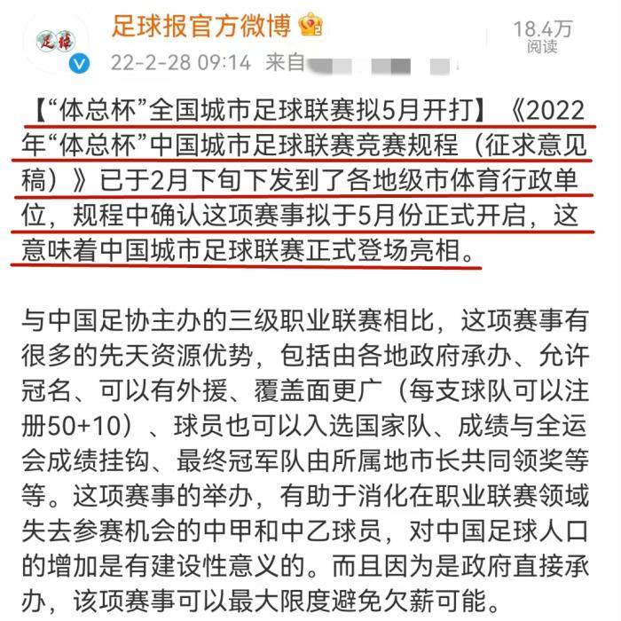 如何解决这样的困境呢?或许总局的出手已经狠狠地打了陈码头的脸。在陈码头给中超去商业化的前提下,总局在5月份将举办全国城市足球联赛,这也将是国内级别较高的足球联赛,但是和中超去商业化的情况不同,总局鼓励这些球队找到冠名商和赞助商,并且允许企业直接冠名,这样的举动无疑是打了陈码头的脸。