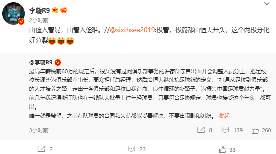 JRS直播网讯 北京时间今天,足球报李璇发表了对广州队薪资调整的看法,随后补充道:“由俭入奢易,由奢入俭难”。