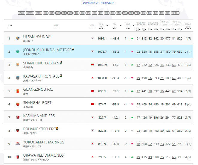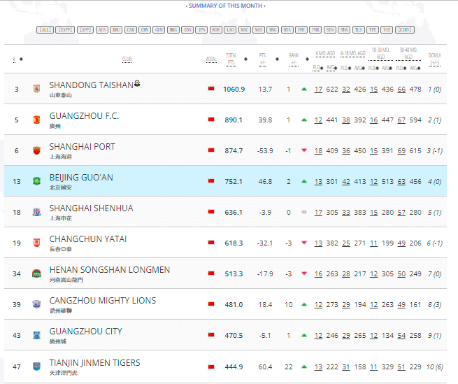 JRS直播网02月04日讯 ,足球数据统计网站ECAR更新了今年第二期的东亚俱乐部排名,来自中超的山东泰山队为位列亚洲第三。