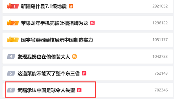 正如武磊在接受采访的时候谈到的,称国足确实令人失望,而且武磊也承认亚洲各队的实力差距逐渐缩小,而国足的进步远不如对手,所以此消彼长之下,国足在本届亚洲杯没有进球,只有尴尬的2平1负的战绩。