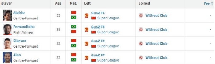 这四名球员现在的状态都显示为“自由球员”,洛国富在19号离开中国,其他三人则更早离开。