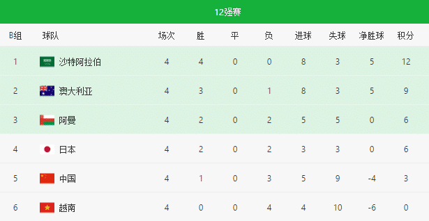 当然联想到日本队也是6分,而沙特和澳大利亚分别是3胜和4胜,所以国足最好的结果是力争挤掉阿曼,然后希望澳大利亚、沙特和日本队大混战,中国队趁机得利。当然前提是中国队在接下来面对这三支强队的时候需要拿到分数,甚至是死磕取得胜利才行,难度之大可想而知。