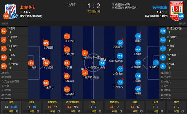 最终,长春亚泰2-1逆转上海申花,不仅豪取联赛两连胜,还连续击败了两支来自上海的球队(海港+申花)。