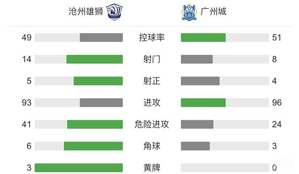全场比赛结束,广州城2-0击败沧州雄狮,收获联赛3连胜。
