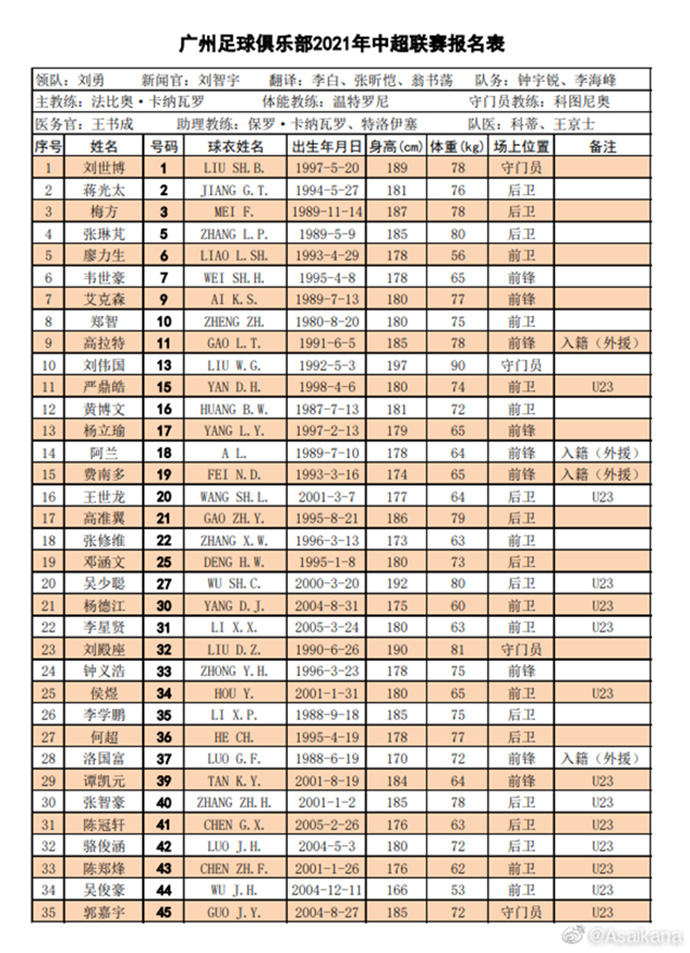 查看更多:2021-2022赛季中超球队最新阵容名单及赛事规则!