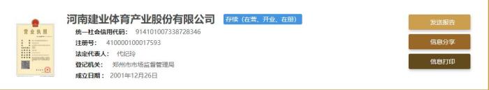 JRS直播网讯 据国家企业信用信息公示系统显示,河南嵩山龙门足球俱乐部股份有限公司在8月3日改名为河南建业体育产业股份有限公司。