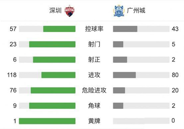 伤停补时4分钟。全场比赛结束,深圳0-1广州城,联赛7轮不败记录终止。