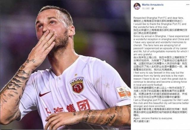 JRS直播网讯日前,据意大利媒体的消息,已经离开上港的阿瑙科维奇,即将加盟博洛尼亚。今日,他也在社交媒体发了告别信。