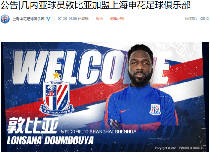 欢迎敦比亚成为申花队的一员,他的加盟将进一步提升申花锋线实力,期待他用精彩的表现为球队带来更多胜利!