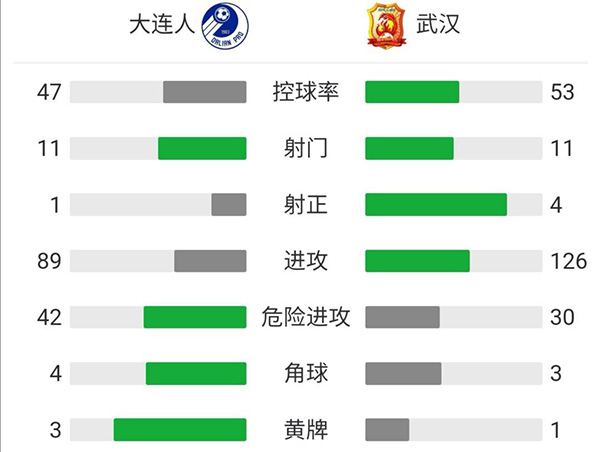 全场比赛结束,大连人1-1武汉队。